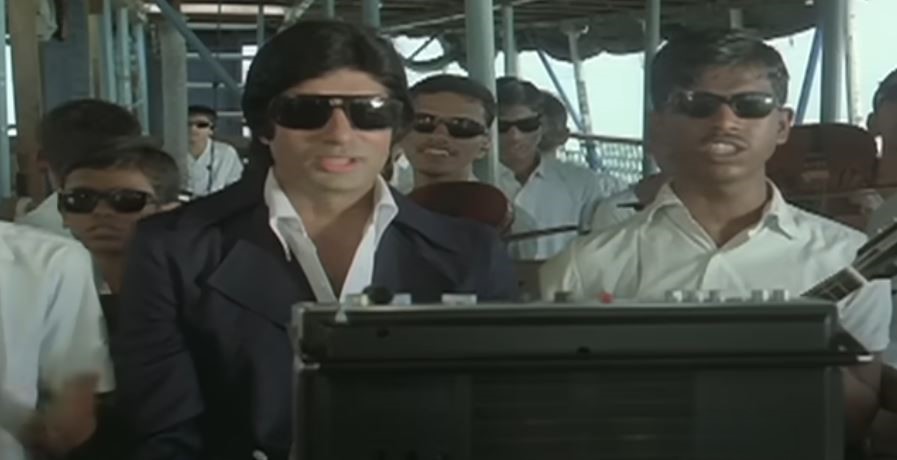 And one more Manmohan Desai movie with all the masala elements of lost and found, crime, revenge etc. Almost all songs from this movie involve some disguise or deception! Hum premi prem karna jaane and Jaate ho jaane jaana are more famous compared to this song. In this song, Amitabh pretends to be blind. He visits his brother Vinod Khanna who teaches in a blind school. In reality, Vinod is a smuggler. Amitabh joins the blind students on a boat tour. But his purpose is to catch his brother red handed while completing a smuggling operation in the sea. It is fun to note that Vinod Khanna “teaches” a song to the students by playing the tape recorder while he completes his smuggling job in a nearby boat. The things that happen in movies!