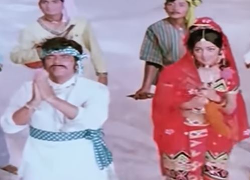 Based on the prince and the pauper plot of lookalikes getting interchanged, the movie had all great songs by LP. This is a situational song. A dancer (Kumkum) hatches a plan to free Sanjeev Kumar from the prison. She assumes the role of a gardener (maalan) and reaches the prison with her basket of flowers. In filmy style, she sings this catchy number, diverts the attention of the prison guards and gets closer to the prisoner. Seems its not very difficult to fool filmy security guards through such deceptions.
