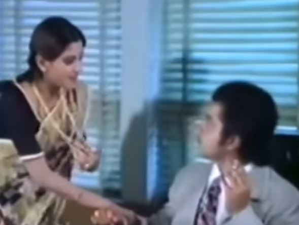 With new orders coming their way, it is time to open a new branch of the mill. The bank authorities are impressed by Bal’s success. They are ready to back him financially. Appa tells Bal him that there is land available near the Krishna river in Sangli. Bal decides to go to Sangli to view the site. On the way, he encounters torrential rain and a tree collapse which force him to seek shelter. Luckily he sees a house. This is the house of his family’s old acquaintance Pandit Vishwanath Bhosle (Pt. Vasantrao Deshpande). He is away but his daughter Veena (Vandana Pandit) and sister (Saroj Sukhtankar) welcome Bal wholeheartedly. Next day, Bal is introduced to Veena’s talent – she is a singer too. Needless to say, he has fallen in love at first sight.
