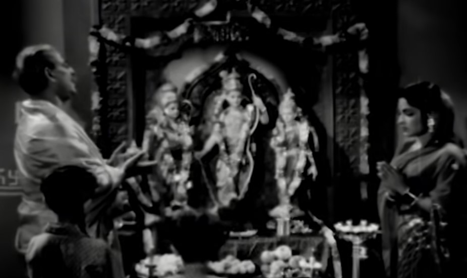 Ramdas and Shanta have 3 sons and a daughter. The eldest son has passed away. His wife is Gauri (Vijayalaxmi) who has 2 sons Gappu and Pappu (played by Moppet Raja and Master Randeep). The second son is Kailash (Raaj Kumar). He looks after the family business and travels to Mumbai frequently. His wife is Sita (Devika). Sita worships her husband and even has his photo in the temple in her room. Kailash is tired of the constant interference and dominating nature of his mother and talks about moving to a different residence with Sita. But she talks sentimentally about the importance of a family staying together. It doesn’t take much time for cracks to develop in a house when people start leaving.
