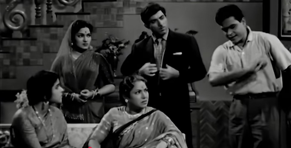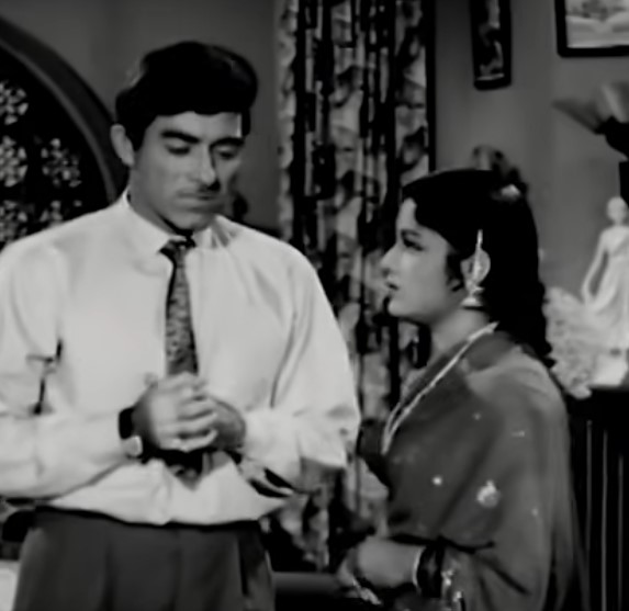 The youngest son is Kamal (Rajendra Kumar), a college student. Through a silly scene, he meets Usha Gupta (Asha Parekh) and they eventually fall in love. Usha’s father is a lawyer Shyam Lal Gupta (Kanhaiyalal). She has a stepmother Sheela (Krishna Kumari) who behaves like a filmy stepmother. But Usha has a caring father who is always concerned about her well being in spite of his wife’s pressure.