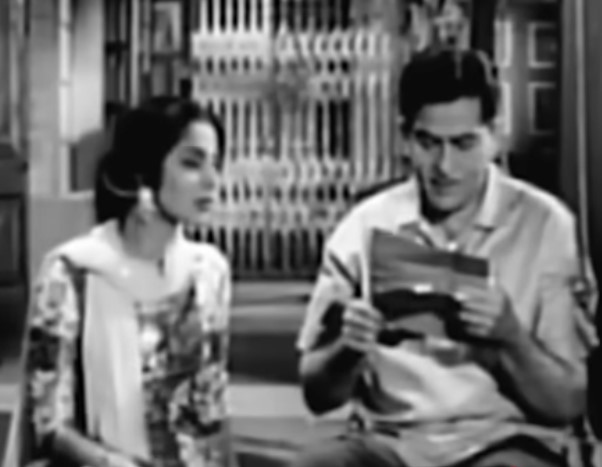After the party, he goes with one of the girls in her car. While reversing, the car hits a girl riding a bicycle. This is Sunita (Waheeda Rehman). She is a salesgirl who works for Navbahar Cosmetics. The girl insults Sunita who slaps her in return. Shekhar is super impressed by the salesgirl – he has found his match. He tries to flirt with her but she shoos him off and leaves.