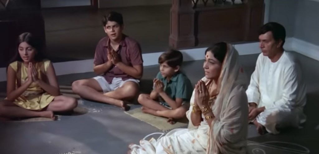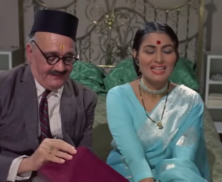 GGKK is the story of 3 families. Shankarnath (Balraj Sahni) and wife Padma (Nirupa Roy) are one happy couple, I mean family. They have 3 school going children – Ravi (Mahesh Kumar i.e. Mahesh Kothare), Raja (Master Ripple) and Rupa (Baby Sonia i.e. Neetu Singh). Shankarnath earns Rs. 630 per month. He seems to work in a Government office and is an honest and principled man who does not accept bribes. He is known for his clean character. Shankarnath is very careful in money matters. He is of the opinion that money needs to be spent thoughtfully.