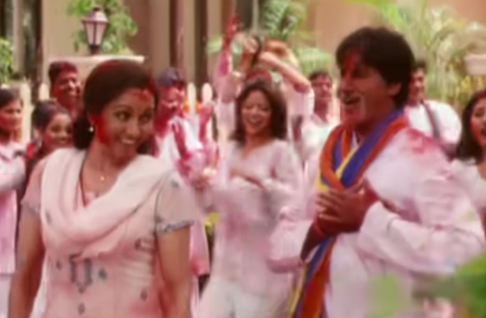 This song immediately reminds you of Rang Barse. The tune is inspired from the folk music of Uttar Pradesh and sung by Amitabh Bachchan himself. While he plays an aged character, he enjoys to the fullest with his wife (played by Hema Malini) and joined by family and friends.