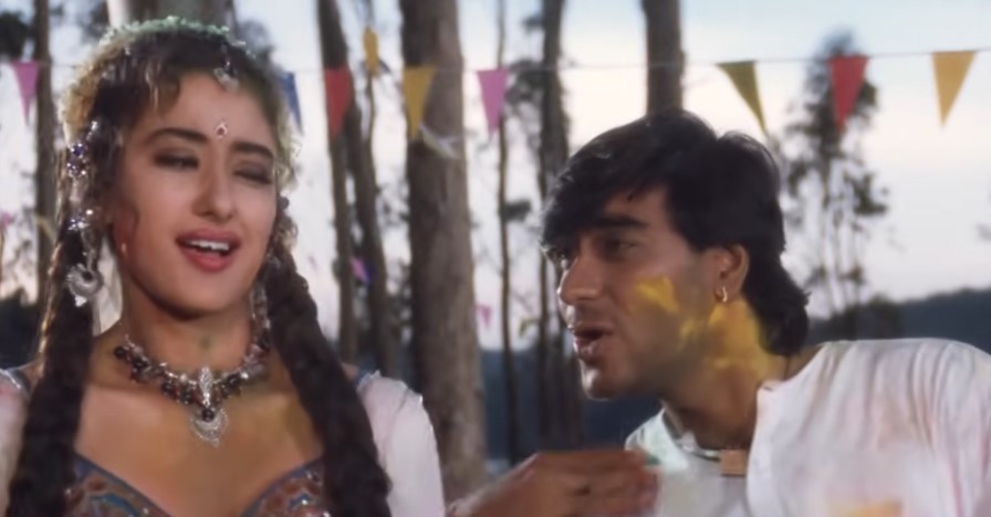 This is a melodious composition in Raag Shivaranjani. The song starts on a sombre note but becomes lively when Karisma Kapoor remembers the Holi celebrations in a flashback. Ajay Devgan and Manisha Koirala are her co-actors, celebrating in full swing.