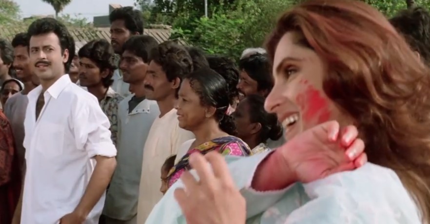 Krantiveer was a hard hitting film but also featured some melodious and catchy numbers. Nana Patekar forces Dimple Kapadia to tell her story. She reacts in shock and mentions one word “Holi” as she remembers this song in a flashback. In happier times, she is celebrating Holi with her lover (played by Girish Malik) but their life is going to change soon.
