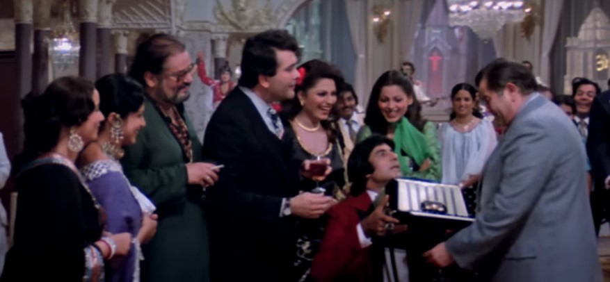 Amitabh Bachchan plays a waiter with a weird name of John Jaani Janardhan. The song portrays the golden jubilee success party of the film Dharam Veer (also made by Manmohan Desai). Stars arrive in full force to join the celebration. Raj Kapoor, Shammi Kapoor, Rajesh Khanna, Dharmendra, Randhir Kapoor, Waheeda Rehman, Mala Sinha, Sharmila Tagore, Bindu…the list goes on. A true filmy song and a film fan’s delight!