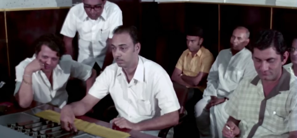 Abhimaan was the story of two singers. After marriage, Uma (Jaya Bhaduri) is convinced by her husband Subir (Amitabh Bachchan) to become a playback singer. He is already a well established singer. This is the first song they record together. The song show typical views of a recording studio with musicians, sound recordists etc. We also get a glimpse of Nitin Mukesh in a special appearance.