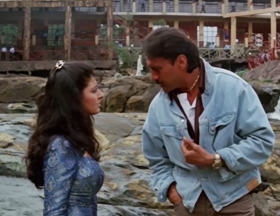 Coming to the third pair of Ravi Mathur (Jackie Shroff) and Natasha Tejani (Sangeeta Bijlani). Ravi is the son of the police commissioner and Divya’s brother. He is a law breaker and works closely with the villains. His aim is to penetrate Bhujang’s organization and strike at its roots to destroy it completely. But his father doesn’t know his real intentions leading to a major conflict between them.