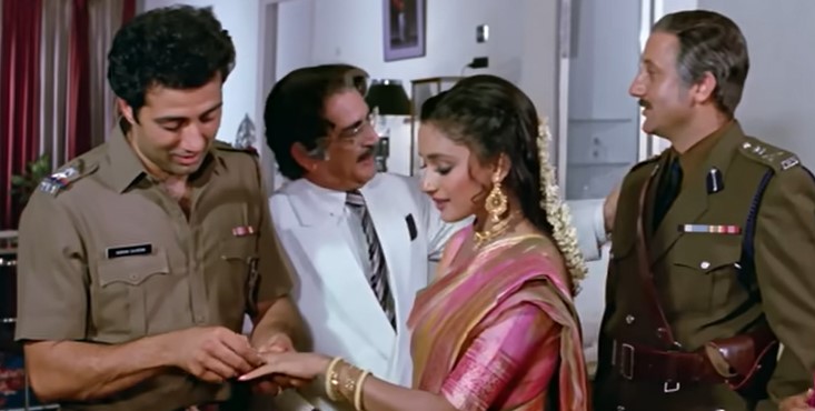 The three male leads were more famous and established compared to the female leads. Sunny Deol is convincing as the upright inspector and Naseeruddin Shah plays the simple village character on a revenge mission effectively. For some reason, Jackie Shroff carries / wears a dupatta at all times!